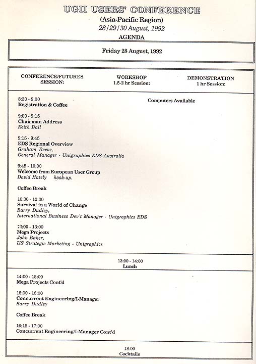 Agenda from the 2nd Annual Australian Unigraphics Users Group Meeting