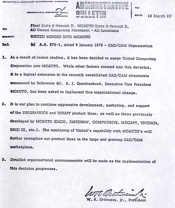 Memo announcing the merging of United Computing into McAuto.![]()