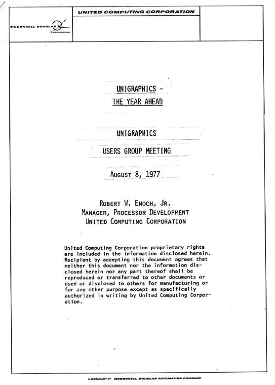 This document was part of the presentations made by United Computing personnel at the 2nd Annual Unigraphics Users Meeting held in Long Beach, CA in August, 1977.