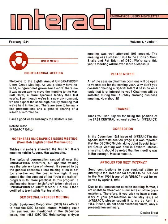 This issue was provided to the attendees of the 8th Annual Unigraphics Users Meeting held in Anaheim, CA. The issue included the agenda for the sessions as well as the biographies of the presenters.