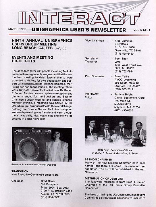 Yes this is another Volume 5 - Number 1 of the Interact. Not sure how this happened. Anyway, this issue described the various activities and events that took place at the 9th Annual Unigraphics Users Meeting.