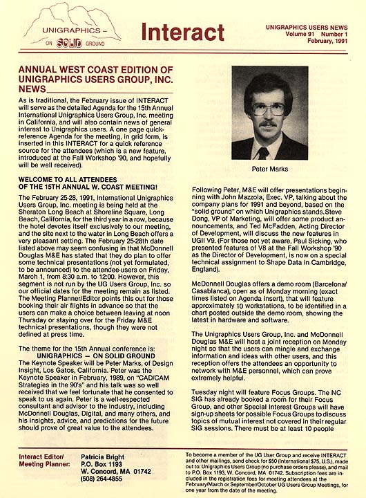This issue was provided to the attendees of the 15th Annual Unigraphics Users Meeting held in Long Beach, CA. The issue included the agenda for the sessions as well as the biographies of the presenters.