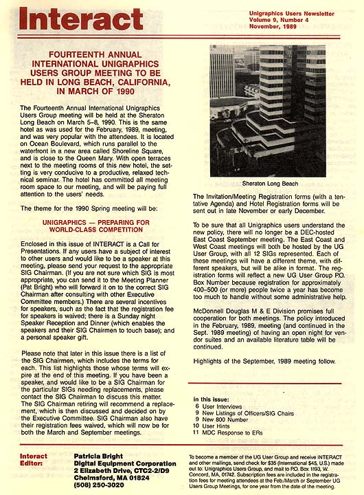 This issue included a preview of of the upcoming 14th International Users Group Meeting coming up in Long Beach, CA. The issue also included a review of the Special Interest Group just finished in Cambridge, MA. There was also an update of the status of the various regional user groups as well as several user interviews from the fall meeting.
