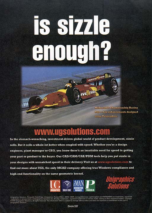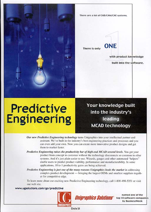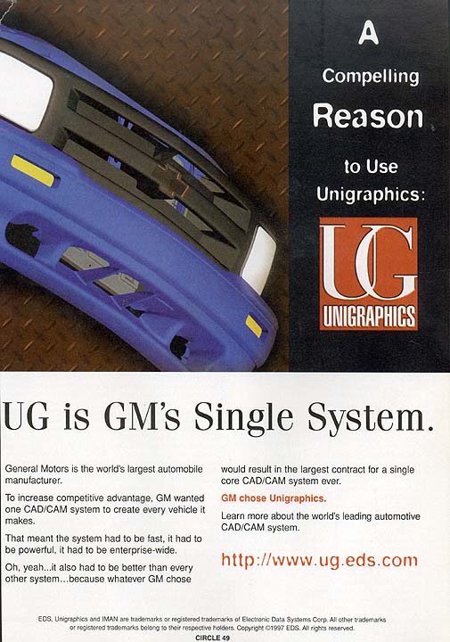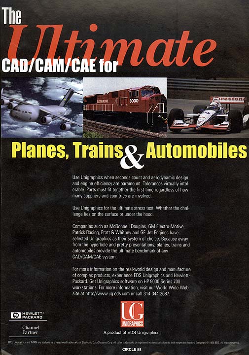 In this section we are presenting examples of Unigraphics advertisements as well as a few magazine covers that featured Unigraphics images. Note that this collection does not represent all of the advertisements placed by the Unigraphics organization over the years, however it is a representative sample.