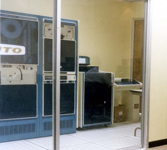The General Automation SPC-16 was the first CPU that Unigraphics was available on. The first model (shown above) was able to support only a single user workstation. The later model #65 was able to support 2 user workstations. Note that the device on the left was a teletype unit and was used as the system console where the operator entered the commands to boot the system and where error messages were printed out.