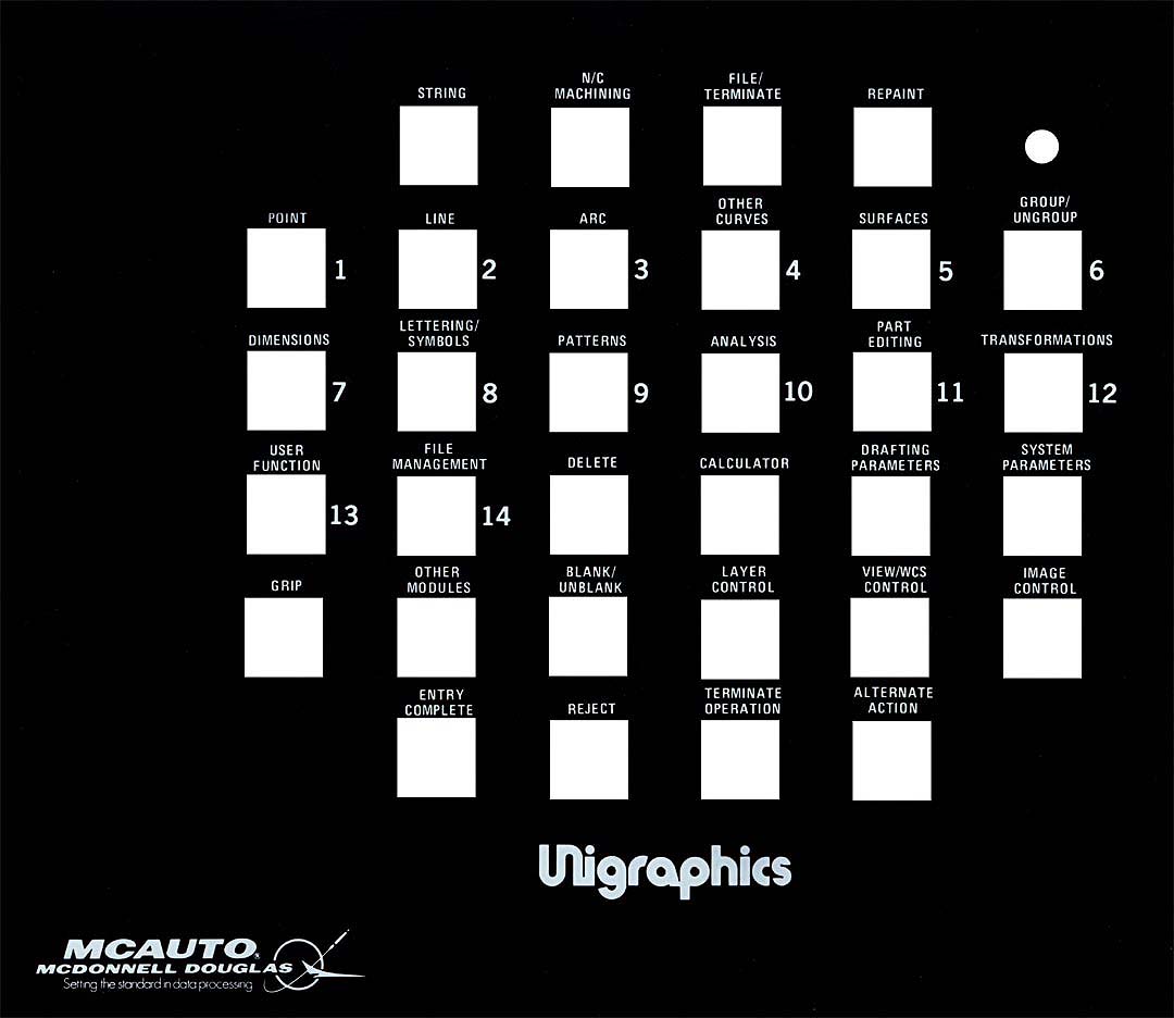 Layout of the PFK overlay for Unigraphics I (circa 1978-83)